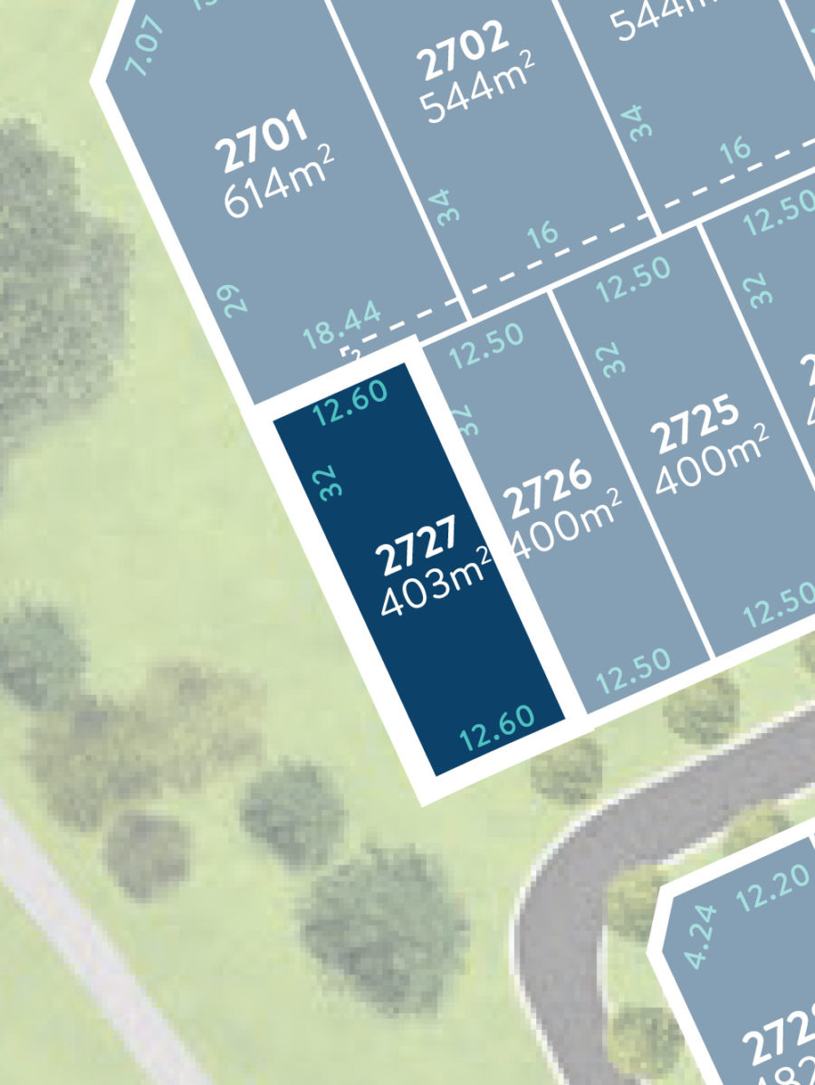 Lot 2727 Frontage 12.6m Depth 32m Area 403m2 Enquire Download Flyer View Stage 27 Download stage flyer