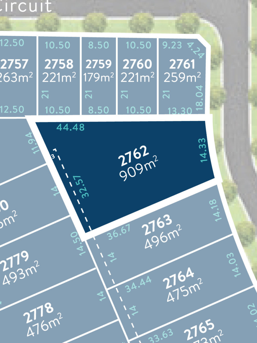 Lot 2762 Frontage 14.33m Depth 36.67m Area 909m2 Enquire Download Flyer View Stage 27 Download stage flyer