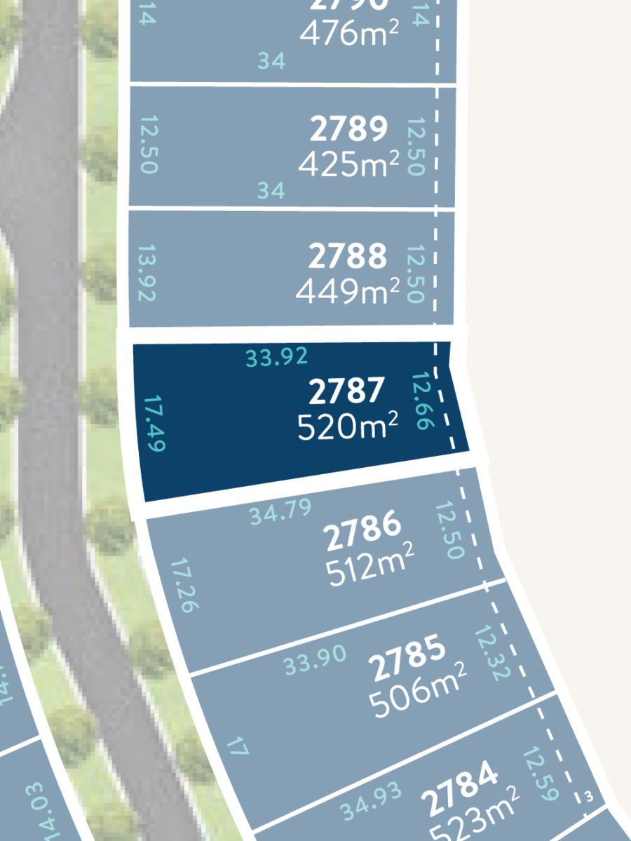 Lot 2787 Frontage 12.66m Depth 33.92m Area 520m2 Enquire Download Flyer View Stage 27 Download stage flyer