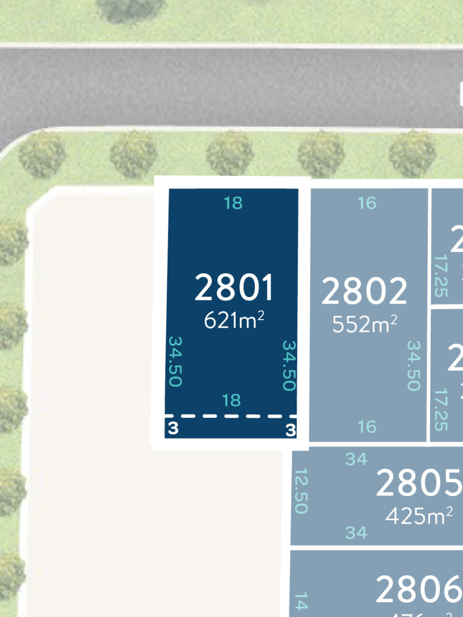 Lot 2801 Frontage 18m Depth 34.5m Area 621m2 Enquire Download Flyer View Stage 28 Download stage flyer